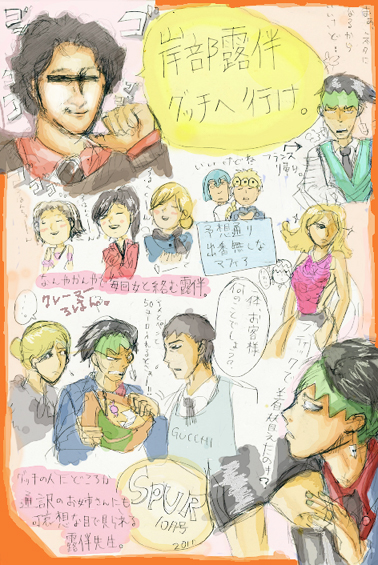 文章はほぼ、前の日記と同じでする・。・・。 シュプールに載った「岸辺露伴グッチへ行く」購入しましたよ。 ネタばれなのでご注意を。 いやー、流石、荒木先生です、少ないページで纏まってるなー!すげえ。 ルーブルといいストーリー上、露伴先生のガードが弱めですね。 しかし、ホント絵が美しいなあ。露伴先生の顔のカットでハッとするもの数点。 露伴先生はあれだね、お姉さん系の人と組むとしっくりくるな・・・。 鈴美おねえちゃん然り、奈々瀬さん然り・・・・。 というか、27歳なのに通訳のお姉ちゃんに「露伴くん」って呼ばれてるのな・・・。年齢に関わらず弟属性があるんでしょーか。 通訳のお姉ちゃん奇麗なのに悪党ですねー。 通訳に化けた詐欺師だったんでしょうか。 あと、一応モード誌だからか、わがまま度が下がって多少、常識と落ち着きが、身に付いたっぽい今回の露伴先生だけど、なんか隙が出来たね。 ストーリーの展開としてしょうがないけど。 ジョジョでの露伴先生と違うからだけど、女の子を愛でる心があるとはw でもそんな、しょっぱなからきわどすぎる服を着る通訳は怪しいよ!露伴せんせえ! 下半身なんか黒パン見えてるよその服! 気をつけて!イタリアはタクシー詐欺とかおきるよ!荷物だけ運ばれちゃうよ! ツボだった露伴先生シーンとか羅列。 ・「よろしくね通訳」の時のポーズの奇妙さと顔の美しい露伴先生。 ・グッチの人がバックの種類ゆっただけなのに「そーゆー専門用語出して威圧しないでよね」とか被害妄想気味な露伴先生。 ・奇妙なバッグの実演でグッチの工場の人からだけじゃなくお姉さんにも痛い目でみられる露伴先生。 ・グッチの工場の人の話を「だからそういうのはいいんだって」の一点張りで面倒くさがる露伴先生。 ・グッチの服着ておきながら、牛の糞をペンでつつくハメになる露伴先生。 それと、、通訳のお姉ちゃんが着替えたシーンで「ブティックで着替えたのォ?」って迷惑そうな顔でお姉ちゃんの膝を触ってる露伴先生のコマが好きすぎる。 「のォ?」って可愛いなおい。荒木作品にはよく出てきますけどね。 インタビュー記事の荒木先生、若い・・・!51歳?ね、ねえよ・・・!あんな51って芸能人か!! いつ歳とるのさ! ジョジョに特に興味のないクイーンファンの友人もその驚異の若さに驚いてた・・・。 ちょっと髪型ウェーブかかっててオサレでしたなあ。服の配色が好み。 今度、またブランドもので呼ばれたとき、また露伴先生がいくことになるんでしょうか。 ブランドもんて縁がないけど、アナスイは好き。色合いがね。 荒木先生の似顔絵をば・・・と思ったけど、似顔絵がクラスで一番どへたくそだった私には無謀でした。 書いてある字が汚いのはもうどうにもなりません。 |