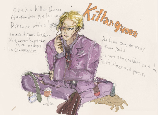 で、クイーンのkiller queen 聴いてたら、つい吉良を落書きしてしまったのっけてみるプレイ。