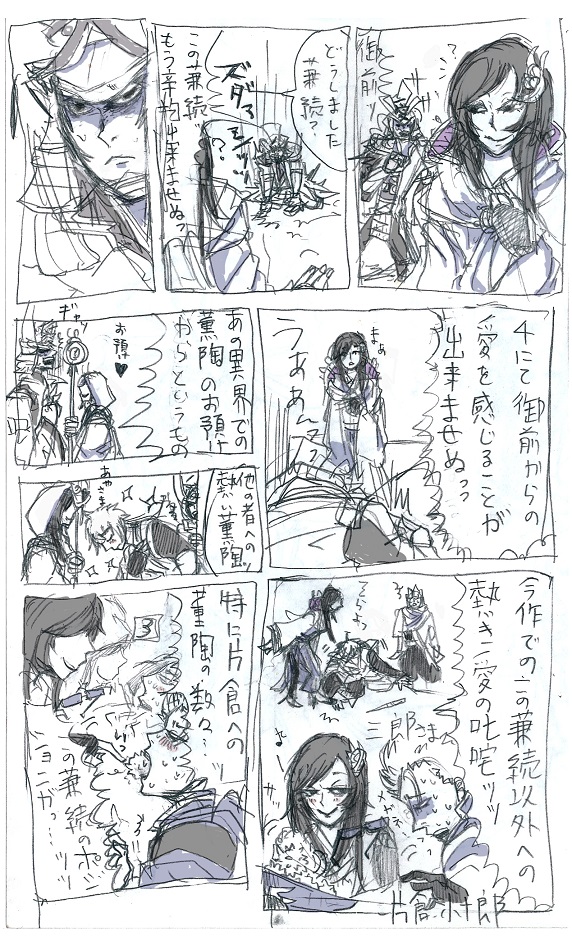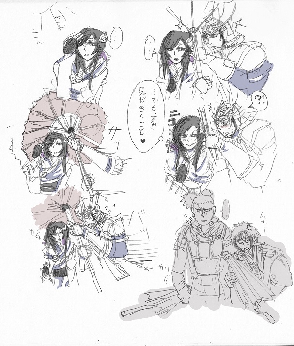 版権はもう当分かかねえと決めていたけれどちょっとむしゃくしゃして描いた、戦国無双4の落書きに適当に色付けたもの。